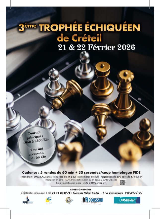 Le club d’échecs de Créteil – Thomas du Bourgneuf organise le 3e Trophée Echiquéen de Créteil !